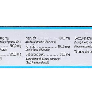 - Cao khô Ginkgo biloba 40 mg, Magnesi 48 mg, Vitamin B6 5 mg.