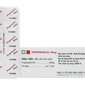 Propranolol TV.Pharm 40mg trị tăng huyết áp, đau thắt ngực (10 vỉ x 10 viên)