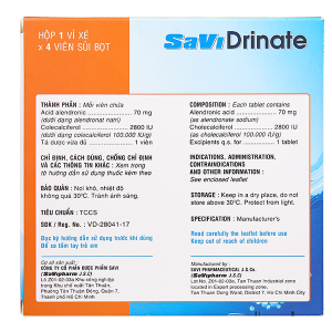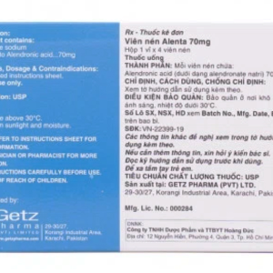 - Dược chất: Natri alendronat trihydrat 91,36 mg (tương đương acid alendronic 70,00 mg).